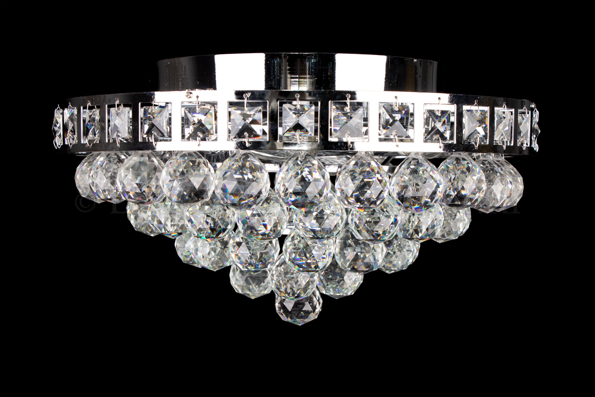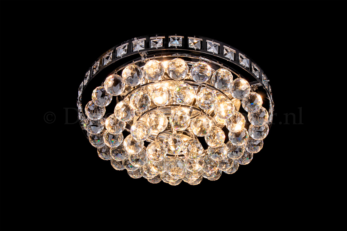 Diese klassische und dennoch zeitlose Deckenleuchte hat 4 Leuchte und einen Durchmesser von 40 Zentimetern. Diese Deckenlampe ist aus wunderschönem Kristall gefertigt und hat einen chromverzierten Rand.