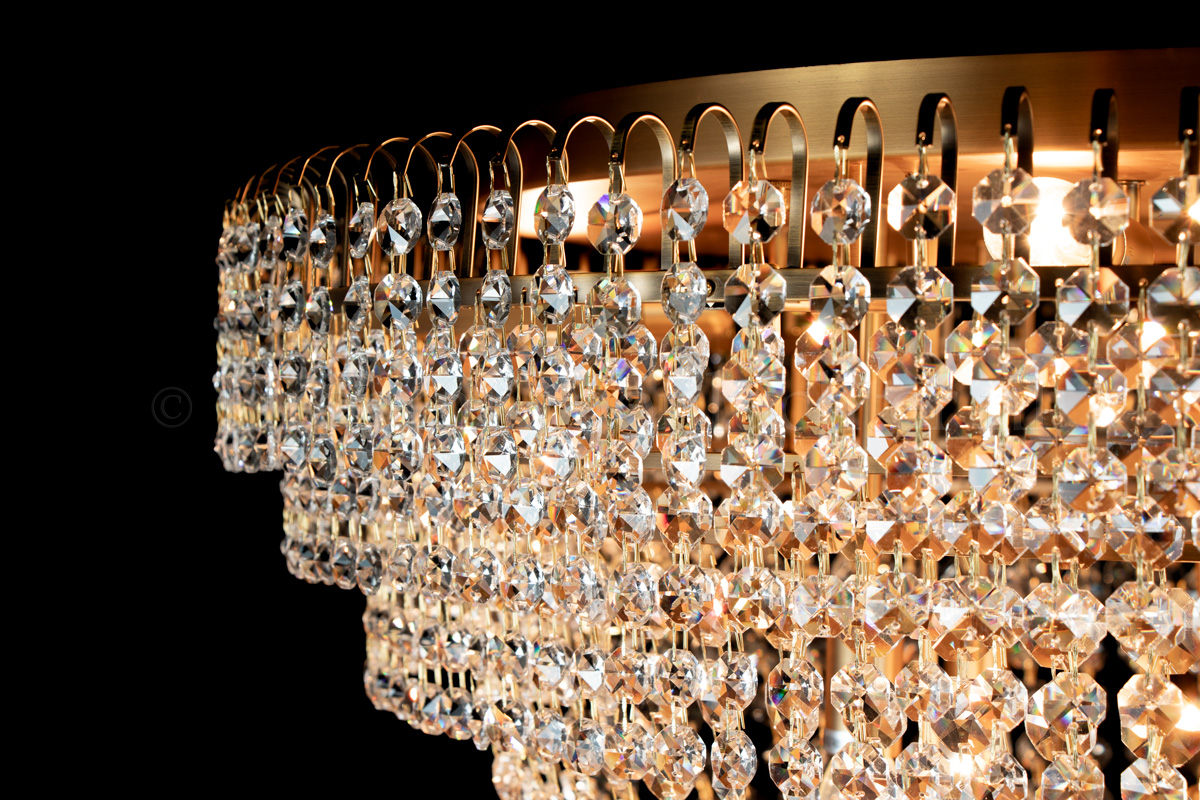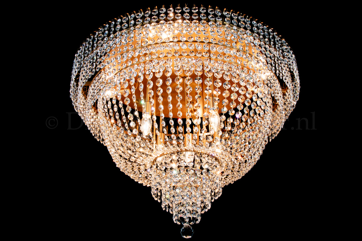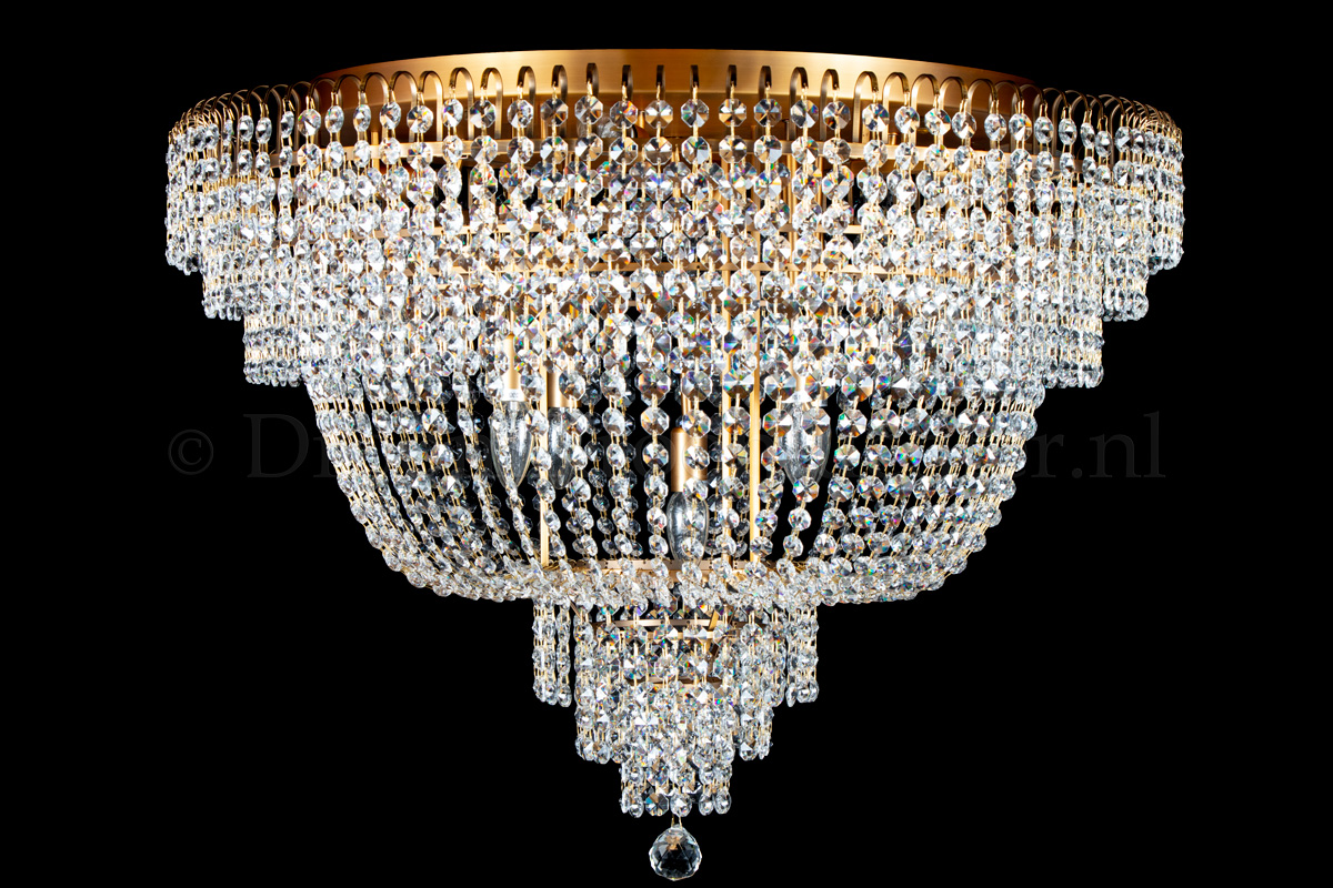 Diese Deckenleuchte besteht aus wunderschönem Kristall und hat matte Bronzkanten. Die Deckenleuchte aus Salle-Kristall mit einem Durchmesser von 80 cm und einer Höhe von 65 cm verleiht Ihrem Raum ein warmes und attraktives Aussehen.