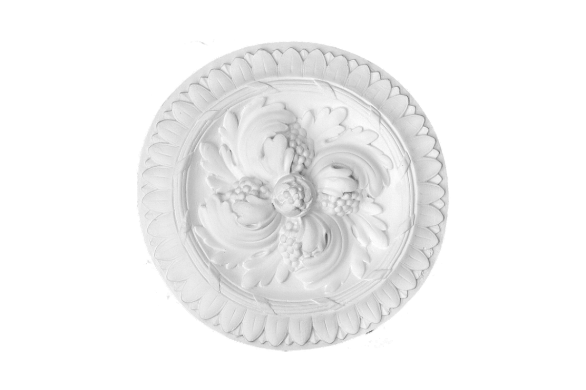 Ein wunderschönes Deckenornament aus Gips. Dieses Ornament passt auch gut in ein modernes Interieur mit einer glatten Stuckdecke.