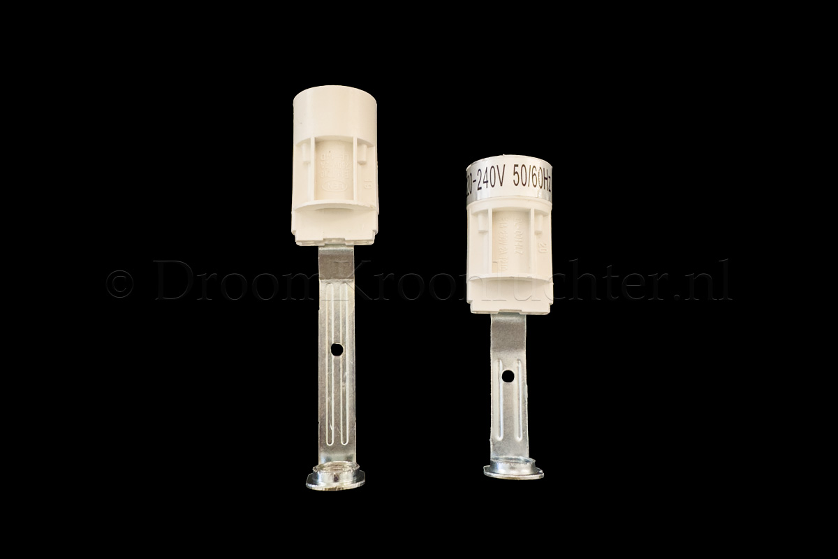 Diese E14-Fassung ist die standardmäßige kleine Fassungsgröße. Den Beschlag gibt es nicht nur als Klickbeschlag, sondern auch als Festbeschlag auf einem Fuß mit M10-Ring. Der Fuß ist in 2 Höhen erhältlich, 4cm und 6cm.