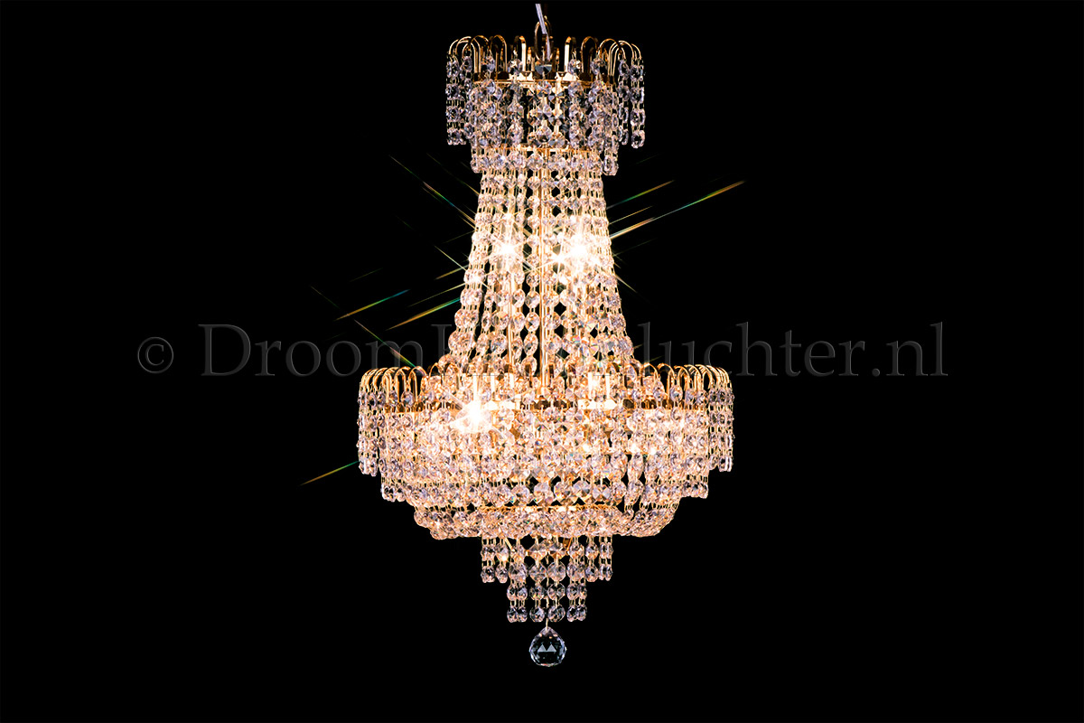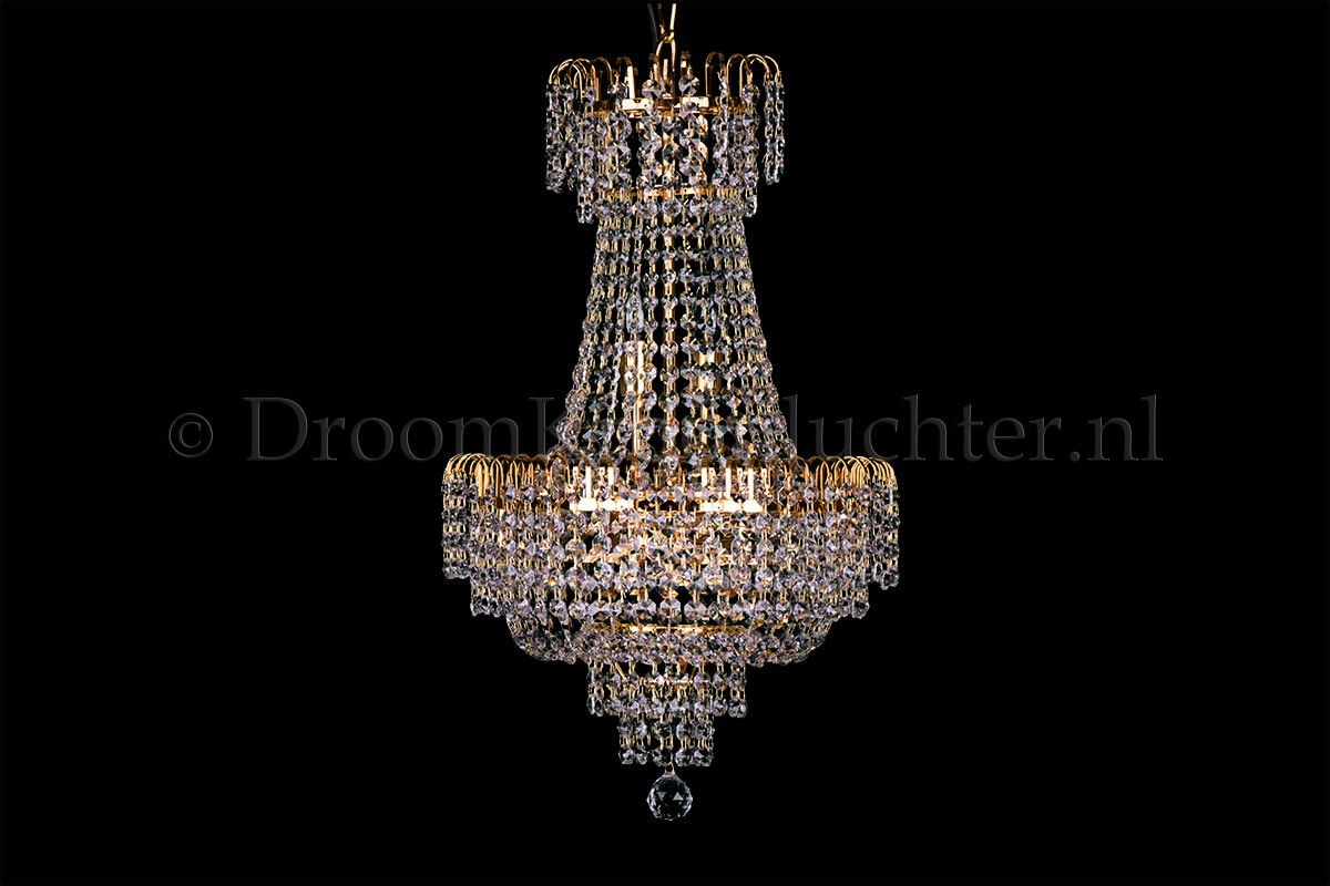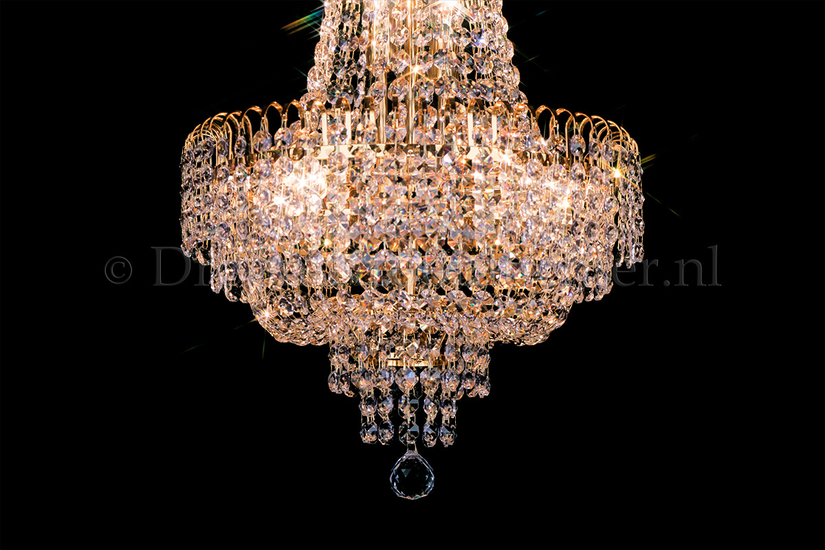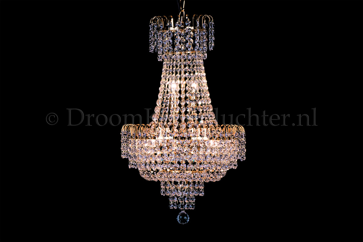 Dieser klassische und vielschichtige Korblüster hat 6 Lichtpunkte, einen Durchmesser von 40cm und ein Höhe von 70cm. Dieser Korblüster ist aus wunderschönem Kristal gefertigt und hat Golden metal. Der Korblüster auf Kristal verleiht Ihrem Raum ein warmes und attraktives Aussehen. Bestellen Sie jetzt!