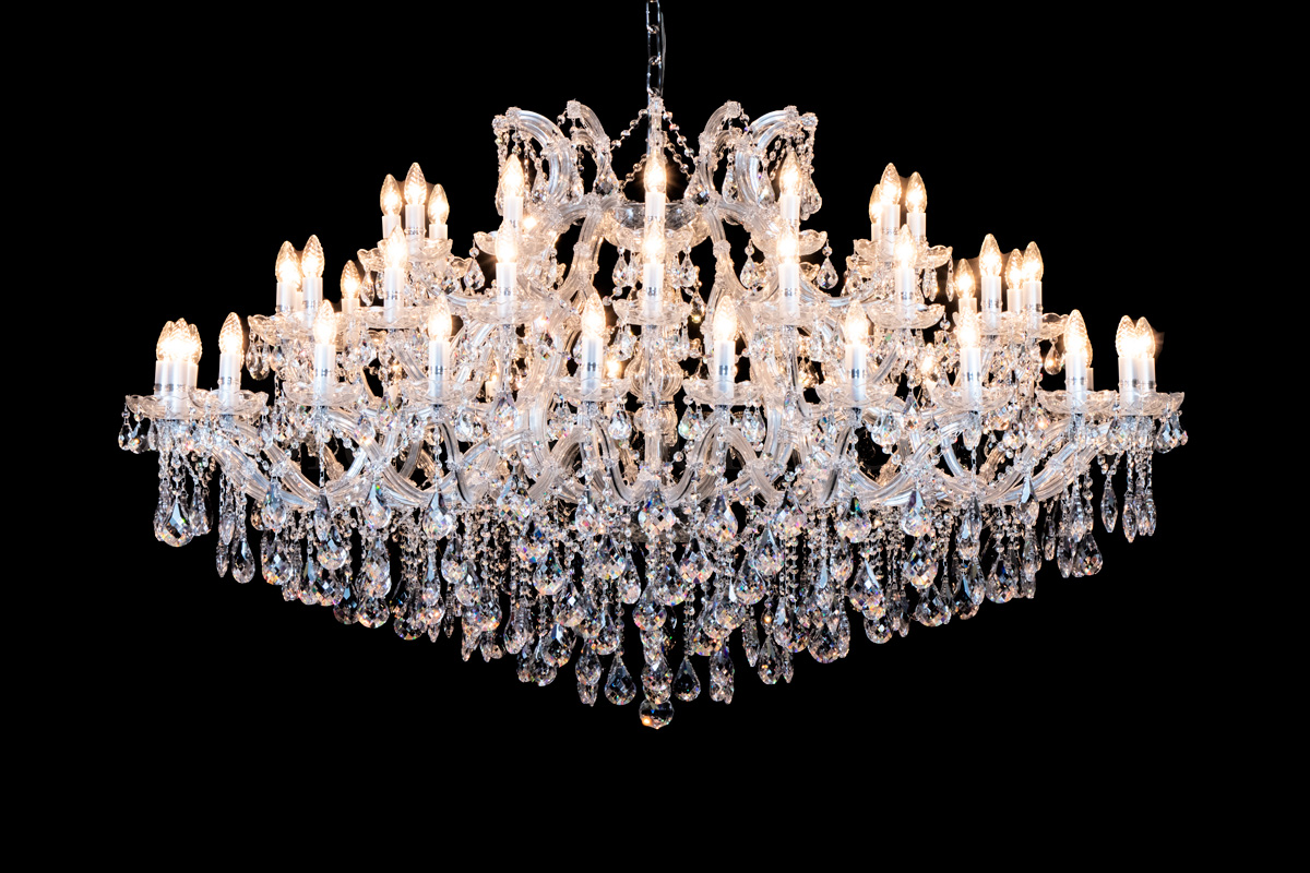 Ein wunderschöner Kristall-Kronleuchter mit 54 Leuchte. Aufgrund der begrenzten Höhe (100cm) und der größeren Durchmessers (170cm) eignet sich dieses Modell sehr gut für größere Räume mit einer nicht ganz hohen Decke. Der Maria Theresa 54 Leuchten Kronleuchter ist aus Chrom und hat eine perfekte Finish. Die Anhänger sind aus hochwertigem Kristall. Die Leuchte ist eine Kombination aus Metall und Glas.