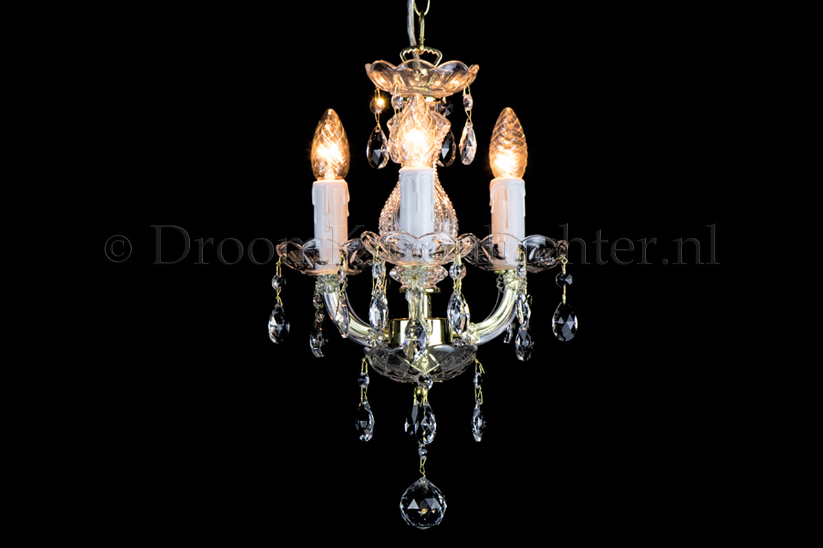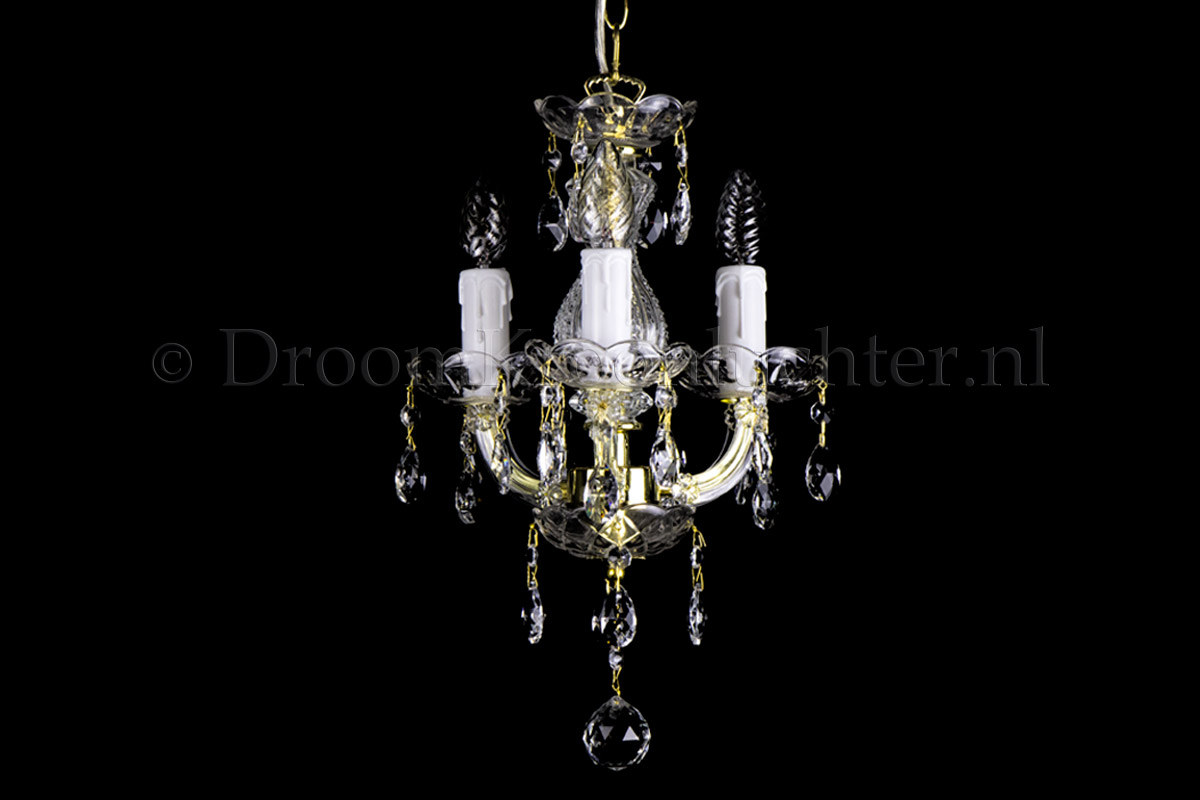 A beautiful chandelier with 3 arms. The crystal chandelier Maria Theresa is gold coloured with a perfect finish.