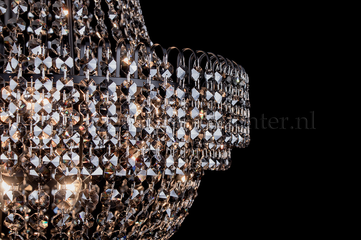 This classic and multi-layered empire chandelier has 10 light points, a diameter of 23.6 Inch (60cm) and a height of no less than 37.4 Inch (95cm). This empire chandelier is made of beautiful black smoked glass crystal and has a matte black finish. The crystal empire chandelier gives your room a warm and attractive appearance. Order now!