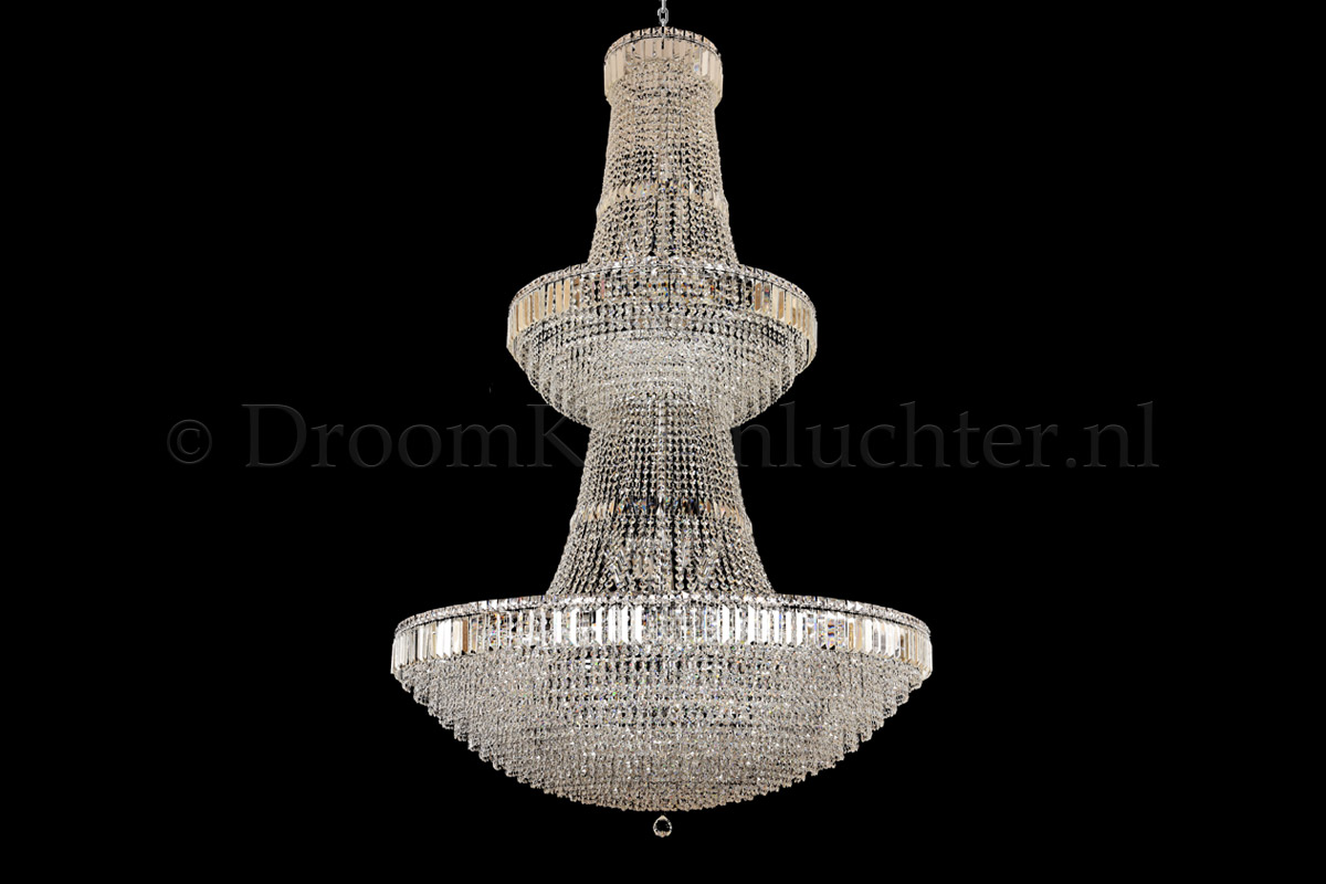 This classic and multilayer empire chandelier has 44 light points, a diameter of 100cm and a height of 160cm. This empire chandelier is made of beautiful crystal and has chrome edges. The crystal empire chandelier gives your space a warm and attractive appearance. A beautiful chandelier for a dream price! Order now.
